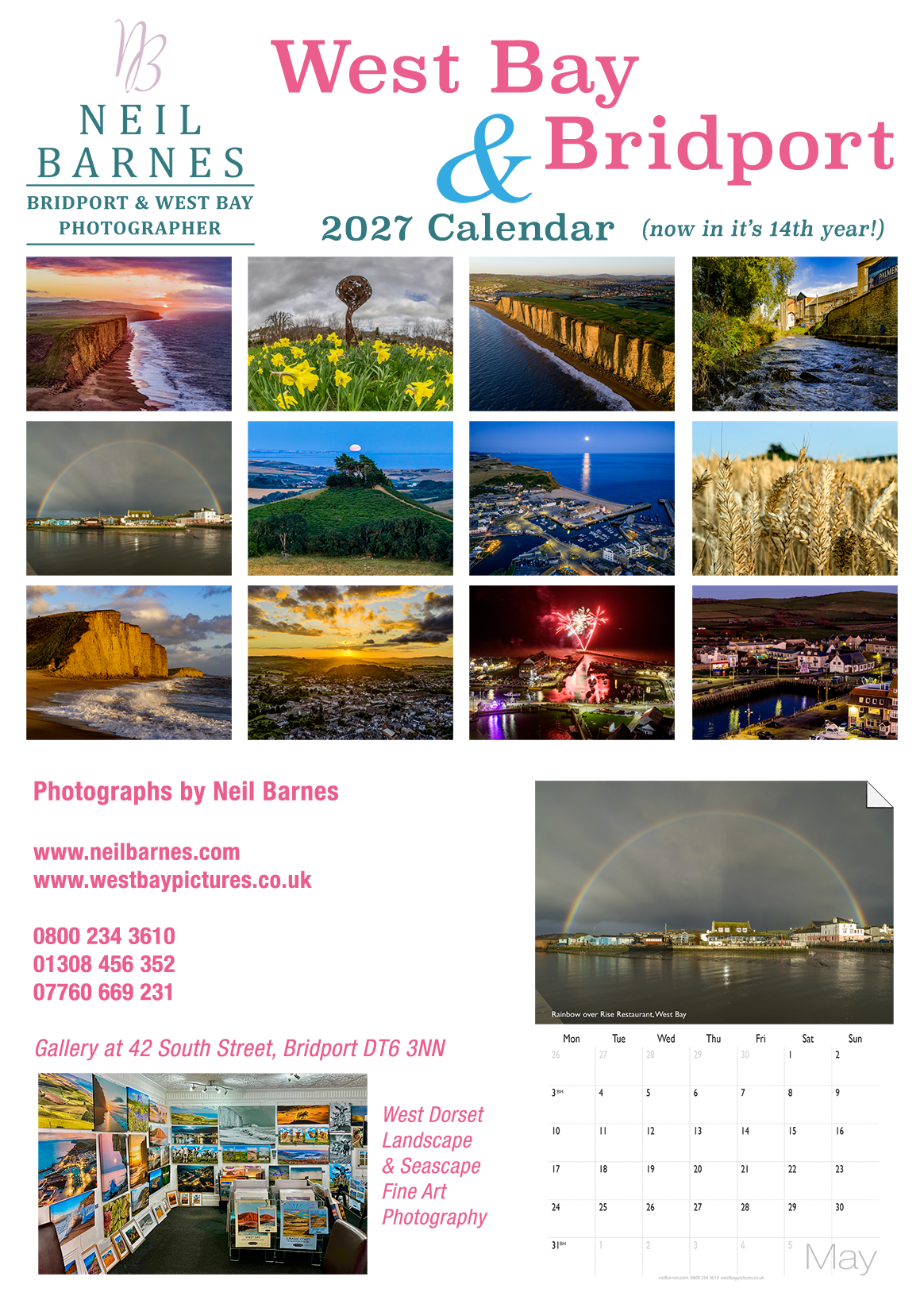 Now in it’s 14th year, get ready for 2027 with an A4 sized calendar featuring pictures of West Bay and Bridport – Price includes postage (UK only)